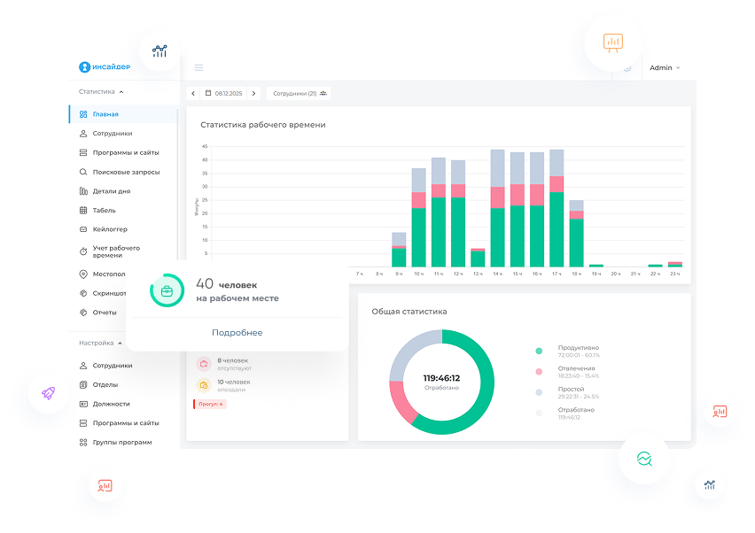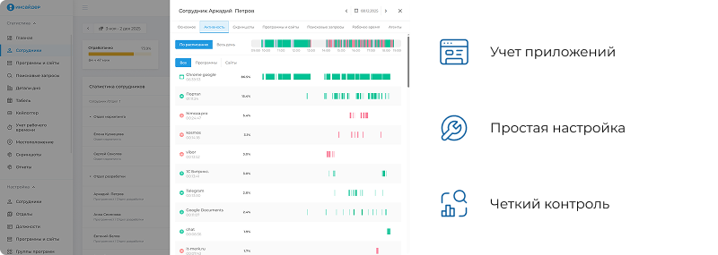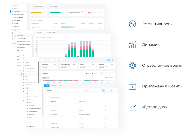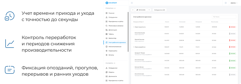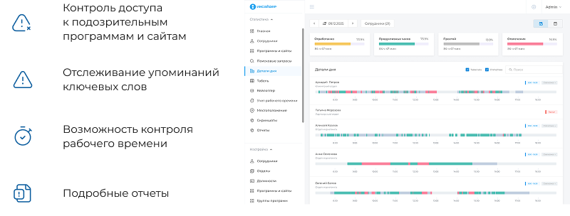 чем занимаются сотрудники в конкретный момент и времени, и выявлять