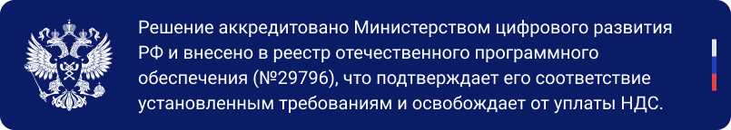 ![]() | Импортозамещение и соответствие требованиям РФ. Платформа полностью локализована, не использует зарубежные сервисы и отвечает требованиям по информационной безопасности. Подходит для компаний с внутренними регламентами, участием в тендерах и государственными контрактами. |